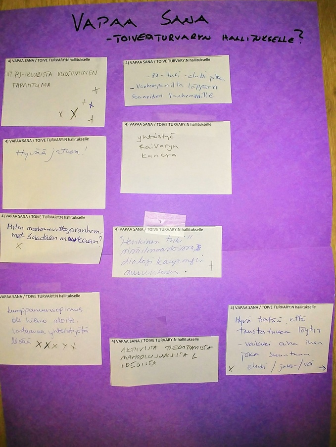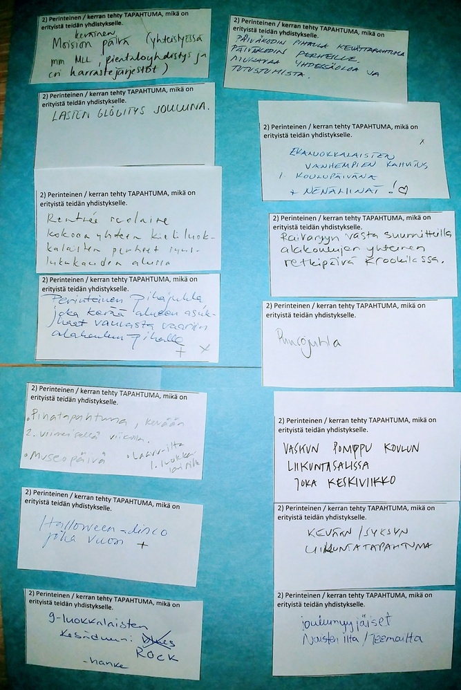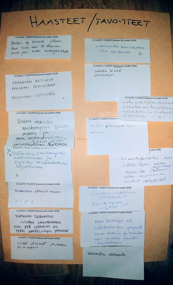 Osallistujia pyydettiin kirjaamaan omasta vanhemapainyhdistystoimijan näkökulmasta yhdistyksensä